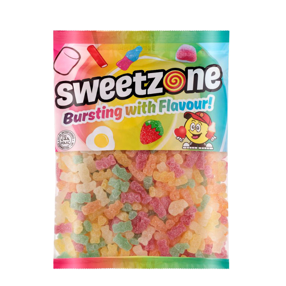 Ingrédients : Sirop de glucose, sucre, amidon de maïs, gélatine de bœuf (halal), acide citrique, jus de concentré (1%), colorants: E160, E141, E100, E163, E133